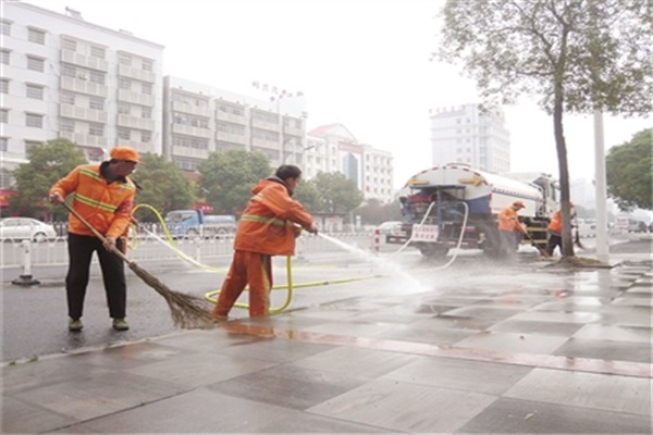 清洗城区街道 图片来源:岳阳日报