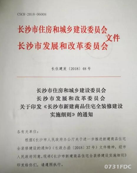 长沙市住房和城乡建设委员会、长沙市发展和改革委员会于5月31日联合印发《关于印发<长沙市新建商品住宅全装修建设实施细则>的通知》(下简称实施细则)。