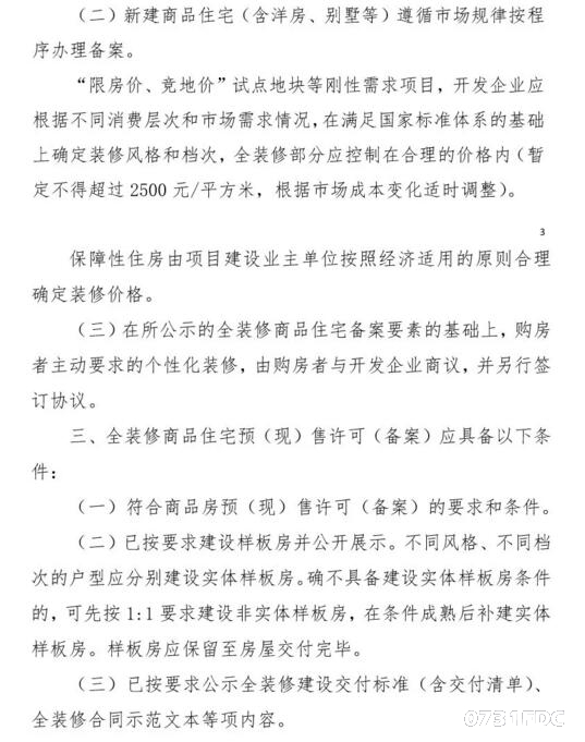 此外,“限房价、竞地价”试点地块等刚性需求项目,还应满足全装修部分的价格不得超过2500元/平方米的要求。