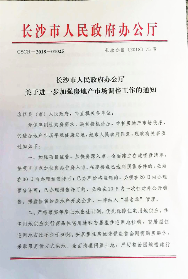 为坚决打胜“反炒房”攻坚战,保障刚性购房需求,坚决遏制投机炒房,切实维护长沙房地产市场秩序,促进房地产市场平稳健康发展,长沙市人民政府办公厅印发《关于进一步加强房地产市场调控工作的通知》,对各项调控政策进行全面升级。