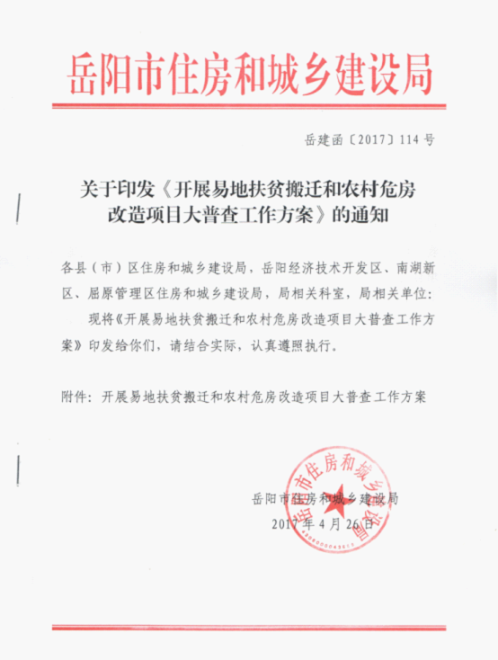 为贯彻落实省委省政府主要领导近期关于脱贫攻坚的系列讲话精神,确保在2个月内全面查摆、全面诊断、全面整改脱贫攻坚存在的突出问题,按省住建厅《关于开展易地扶贫搬迁和农村危房改造项目大普查的通知》(湘建村函[2017]122号)要求,我局决定在全市范围内深入开展易地扶贫搬迁和农村危房改造项目大普查(以下简称大普查)。现制定如下工作方案: